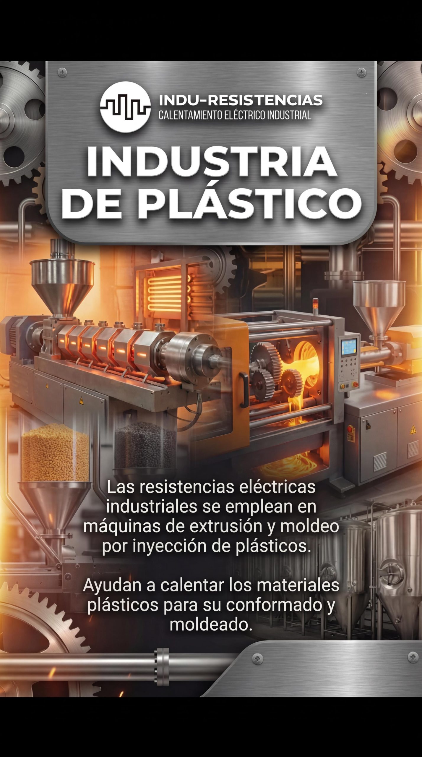 Las resistencias eléctricas industriales se emplean en máquinas de extrusión y moldeo por inyección de plásticos. Ayudan a calentar los materiales plásticos para su conformado y moldeado.