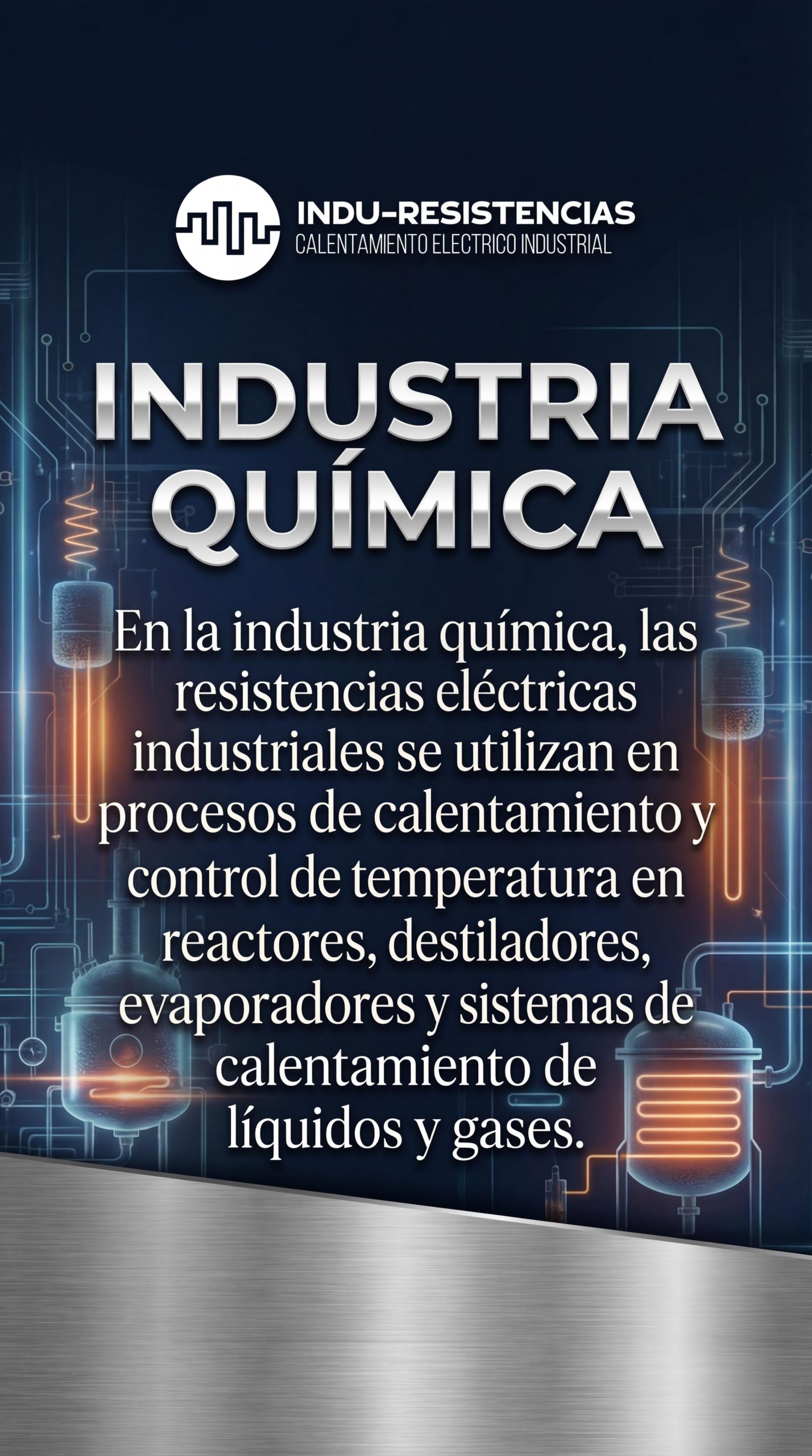 En la industria química, las resistencias eléctricas industriales se utilizan en procesos de calentamiento y control de temperatura en reactores, destiladores, evaporadores y sistemas de calentamiento de líquidos y gases.