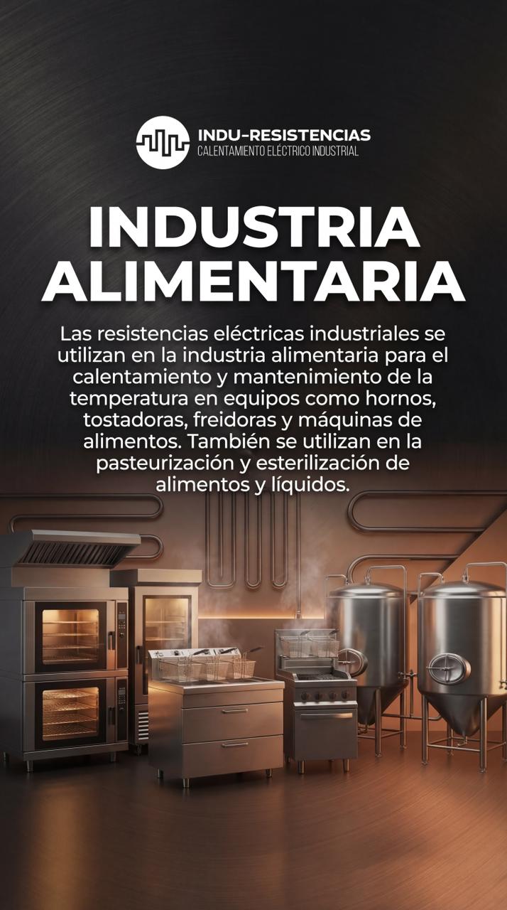 Las resistencias eléctricas industriales se utilizan en la industria alimentaria para el calentamiento y mantenimiento de la temperatura en equipos como hornos, tostadoras, freidoras y máquinas de alimentos. También se utilizan en la pasteurización y esterilización de alimentos y líquidos.